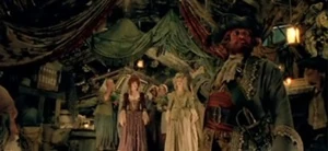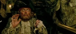 Allora il banditore, tenendo in mano il Codice, dice che questa follia è opera di Jack Sparrow. Sentendo il nome Sparrow Mungard si gira e chiede dove sia finito il colpo di pistola da lui sparato e si scopre che è finito nel Codice. Il banditore cade per terra all'indietro. Tutti sono scioccati di ciò che è appena accaduto: perfino Mungard stesso. I pirati parlano tra di loro su ciò che è appena successo e uno di loro dice che il capitano Teague ucciderà Mungard per la sua azione.