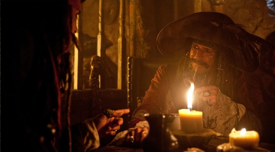 Edward Teague con Jack Sparrow nel pub La Figlia del Capitano.
