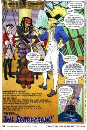 Capitan Jack Sparrow è stato catturato dal capitano Oliver Randolph Pynce-Jones III e portato a bordo dell'HMS Achilles. Pynce-Jones III, al quale è stato assegnato da re Giorgio II di Gran Bretagna il compito di sterminare la pirateria nella acque dei Caraibi, parte con la sua nave per Port Royal viaggiando attraverso l'insenatura dei contrabbandieri e tenendo Jack legato all'albero della nave. Poco dopo Jack incontra Dimity Mipps, una sua vecchia conoscenza che ora lavora a bordo dell'HMS Achilles. Il capitano nota che Mipps sta parlando con il prigioniero ma prima che possa punirlo una terribile risata risuona in tutta la nave. Una misteriosa figura che cavalca un cavallo sale sulla nave. La figura parla di se stesso come uno spaventapasseri e punta la sua pistola al capitano. Lo spaventapasseri, che si definisce lo spirito delle paludi, appare familiare a Jack. Lo spaventapasseri ordina che Jack venga liberato e Mipps lo libera. Poi Jack cade nel ponte inferiore della nave mentre lo spaventapasseri combatte con gli uomini di Pynce-Jones. Jack viene poi salvato dallo spaventapasseri. Lo spaventapasseri da a Jack l'onore di accendere un cannone puntato al ponte principale dell'HMS Achilles. Jack fa fuoco con il cannone e con un sol colpo ricevuto l'HMS Achilles affonda. Jack, lo spaventapasseri e la ciurma fuggono a terra mentre Pynce-Jones preferisce affondare con la sua nave. Tuttavia le acque dell'insenatura sono abbastanza basse da impedire al capitano di morire affogato. Più tardi Jack chiede allo spaventapasseri di unirsi alla sua ciurma ma lo spaventapasseri rifiuta e afferma che il suo posto è tra la gente di Romney Marsh. Quindi lo spaventapasseri dice addio a Jack.