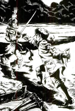 Fitzwilliam combatte con Jack Sparrow all'Insenatura salina