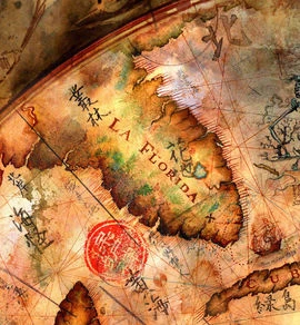 La Florida (con l'ubicazione della Fonte della Giovinezza segnata con una X) sulla mappa di Mao Kun