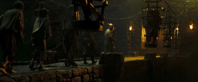 Qui gli sventurati prigionieri, salita la scalinata esterna che portava alla prima torre, venivano trascinati in catene attraverso uno stretto ponte che conduceva alla struttura principale dell'edificio. Lungo questo punte in pietra i detenuti erano costretti ad assistere a uno spettacolo orribile: una fila di gabbie appese a catene arrugginite, in cui erano rinchiusi individui che non avevano alcuna speranza di sopravvivere. Quasi tutti perdevano la ragione a causa della fame e della sete e i loro occhi spesso venivano divorati dai famelici corvi.